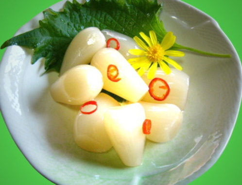 国内産の姿形の美しい粒よりのらっきょうを淡い酸味の甘口でパリッと浅漬けに仕上げました。らっきょうは健康にも良く、血液の流れを促進し浄化する働きもあると言われています。